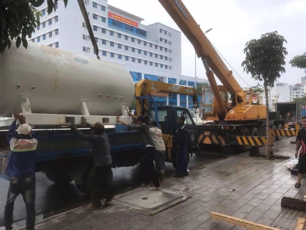 Di dời buồng điều trị giảm áp 3,5 tấn cho Bệnh viện Quân đội 87
